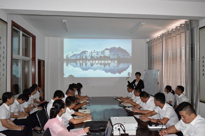 會(huì)議首先由財(cái)務(wù)部付衍鑫對(duì)全員進(jìn)行了承兌匯票基本常識(shí)、收取中注意事項(xiàng)以及結(jié)合業(yè)務(wù)實(shí)際運(yùn)用中的換算等方面的培訓(xùn),付衍鑫講解過程中專業(yè)又不失生動(dòng)的方式得到了全員的一致好評(píng),使得員工加深了對(duì)承兌匯票的認(rèn)識(shí),提高了他們處理承兌問題的能力。
