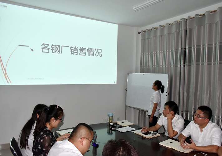 首先由內(nèi)勤主管滿麗娜按鋼廠、品種、個(gè)人銷量排名、目標(biāo)達(dá)成率排名、月度增長(zhǎng)率排名等公布銷售數(shù)據(jù)。