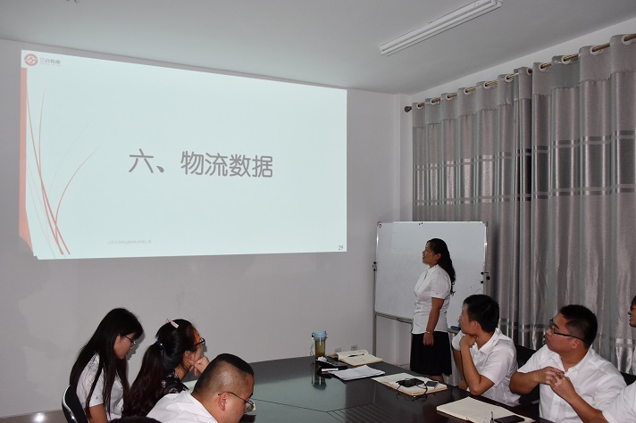 會(huì)議第三項(xiàng)由物流部負(fù)責(zé)人李敏公布8月份物流數(shù)據(jù),從數(shù)據(jù)分析來看,八月自派車輛達(dá)到30%以上,離公司本年度自派車輛要達(dá)到40%的目標(biāo)更近了一步。